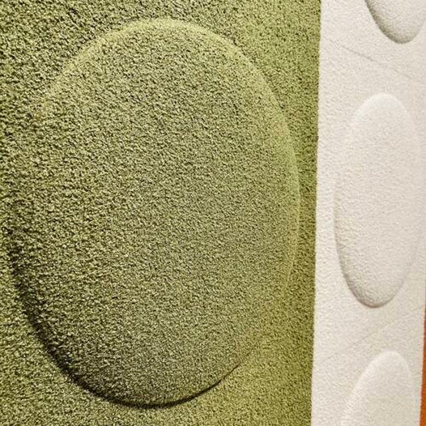 Die Platte ist auf der Rückseite mit einer Markierung versehen. Filz hat eine Faserrichtung. Wenn die Platten nicht in der gleichen Richtung verlegt werden, entsteht ein Farbunterschied. Wenn die Platten mit der Markierung immer in die gleiche Ecke gelegt werden, z. B. unten links, entsteht kein Farbunterschied zwischen den Platten der gleichen Farbe.